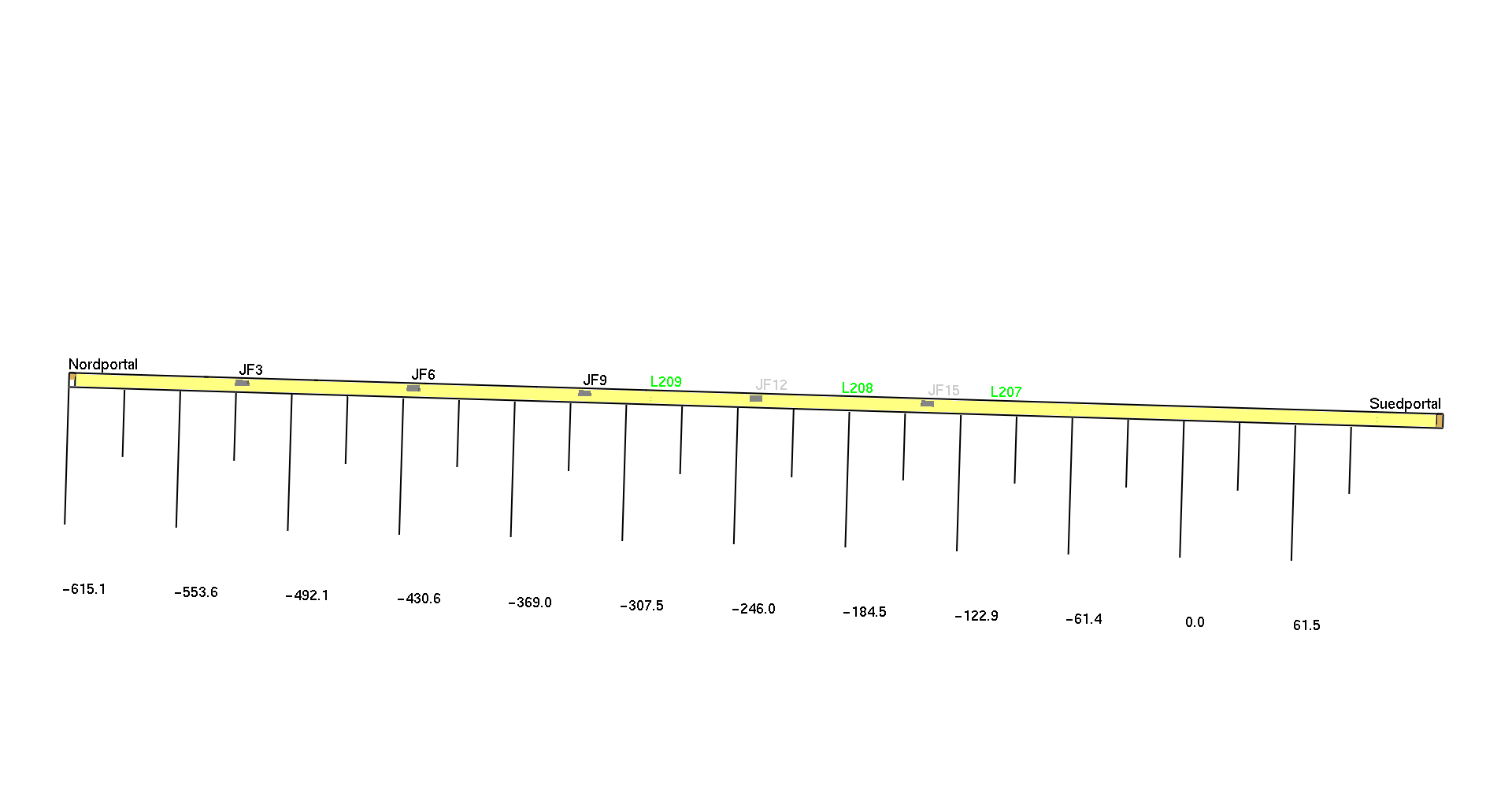Die Untersuchungen wurden parallel experimentell am Modelltunnel und numerisch mit dem Fire Dynamics Simulator (FDS) durchgeführt. Die Validierung erfolgte durch eine Gegenüberstellung der Rauchausbreitung und der Längsgeschwindigkeiten in der Tunnelachse (Vertikalprofile) zu den Daten aus MTFVTP 1995.