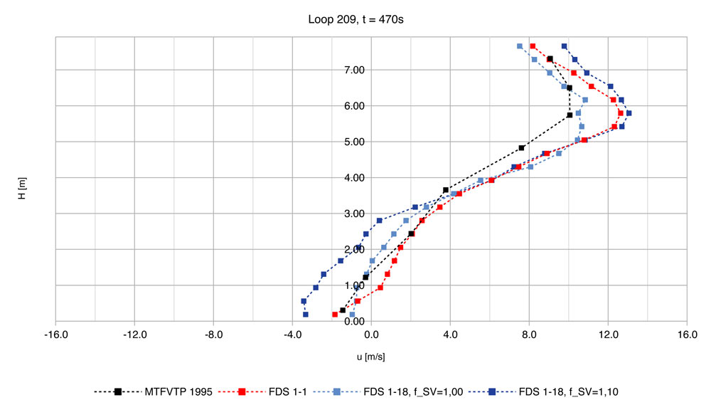 Die Untersuchungen wurden parallel experimentell am Modelltunnel und numerisch mit dem Fire Dynamics Simulator (FDS) durchgeführt. Die Validierung erfolgte durch eine Gegenüberstellung der Rauchausbreitung und der Längsgeschwindigkeiten in der Tunnelachse (Vertikalprofile) zu den Daten aus MTFVTP 1995.