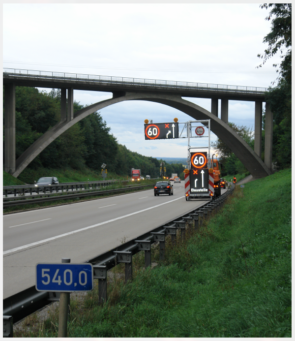 Zur Beurteilung der Überkopfsignalisierung wurden Geschwindigkeiten sowie Fahrstreifenwechsel aufgenommen und anschließend mit dem Referenzfall verglichen. Die durchgeführten Untersuchungen konnten zeigen, dass diese Art der Absicherung verkehrssicher und leistungsfähig betrieben werden kann.